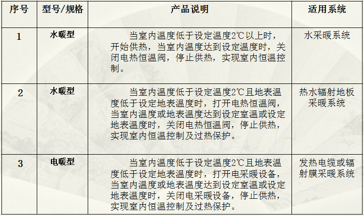 ◆電采暖液晶溫控器,適用于電采暖(設(shè)備)系統(tǒng)的溫度自動調(diào)節(jié)控制。